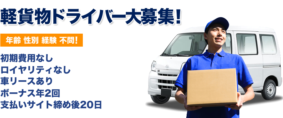 初期費用・ロイヤリティ一切なし。賞与年2回。軽貨物ドライバー募集中詳しくは[03-6264-9365]